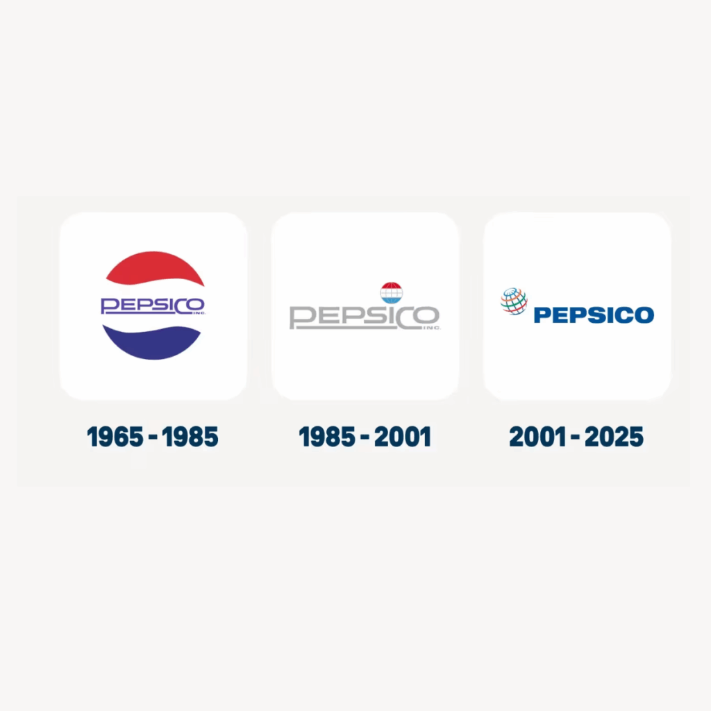 The move away from Pepsi’s red/blue globe to a more abstract “P + supporting shapes” ties to their wider business ambition. Their new look feels fresher, warmer and more human, built around the line “Food. Drinks. Smiles.” It’s a move to remind people they’re more than fizzy pop – they’re Quaker, Walkers, Tropicana, Doritos… and more.