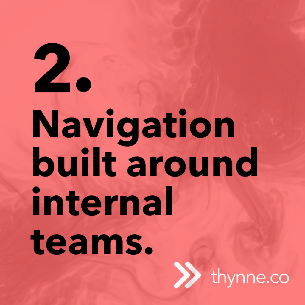 - Navigation built around internal teams, not users. Menus should make sense to the people using them.